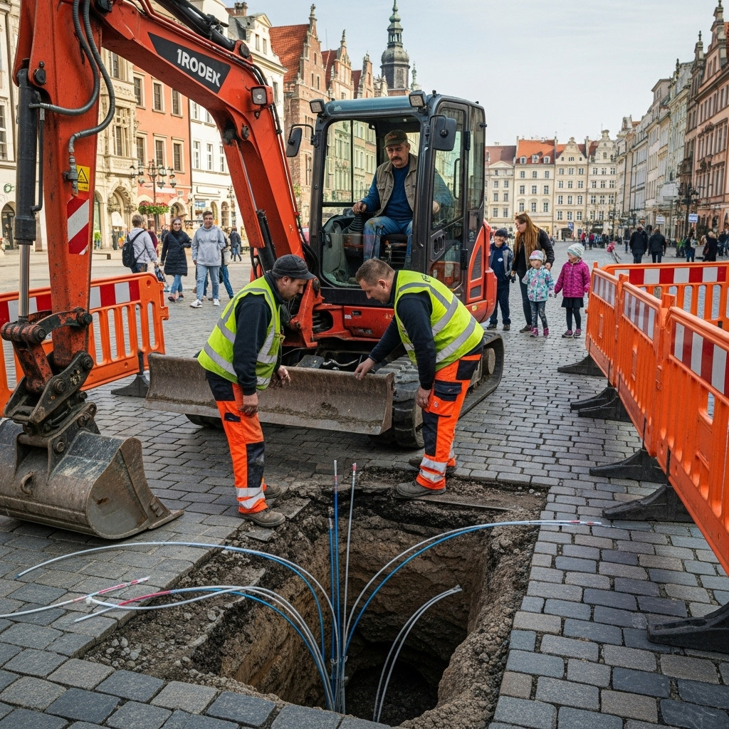 Realizujemy naprawy uszkodzeń infrastruktury podziemnej, dokopujemy się do uszkodzonych elementów. Naprawiamy. Kopiemy otwory pod ziemią.